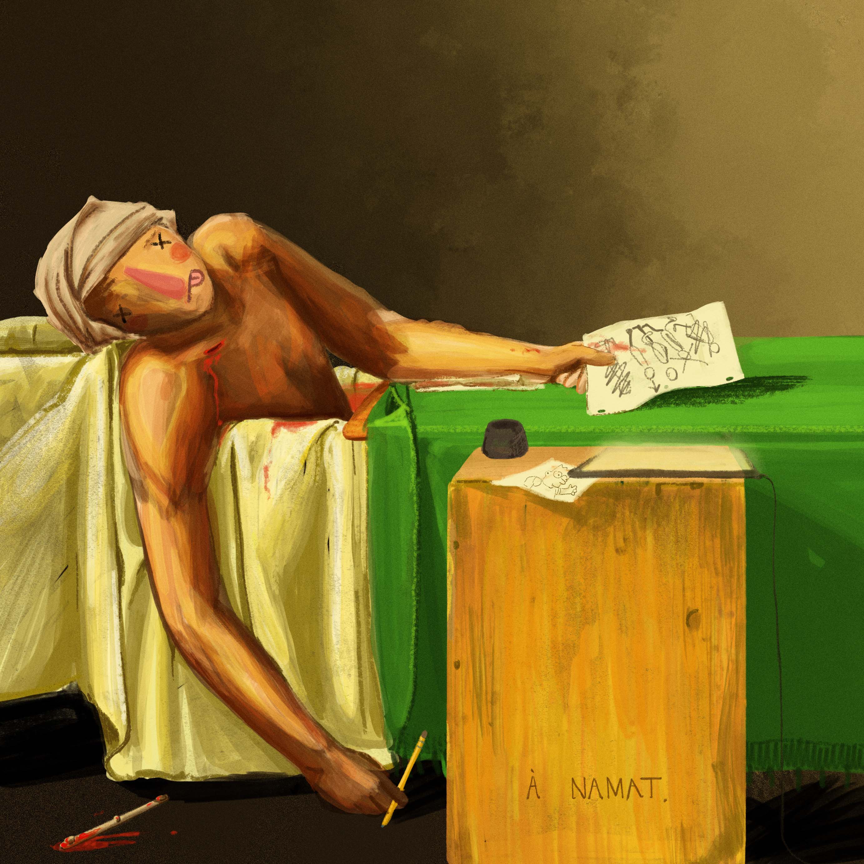 “The Death of Marat” as The Death of an Animator by Jacques-Louis David.